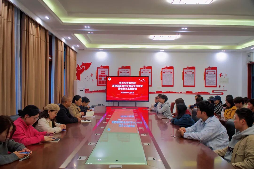为全面落实国家助学贷款政策,切实加强对学生的思想引领与成长关怀,2025年11月6日下午,语言与传媒学院在学院2008党员活动室举行了高校国家助学贷款签约仪式暨诚信活动。学院党总支书记李秀林、副院长付玉成及辅导员代表共同参与此次活动。